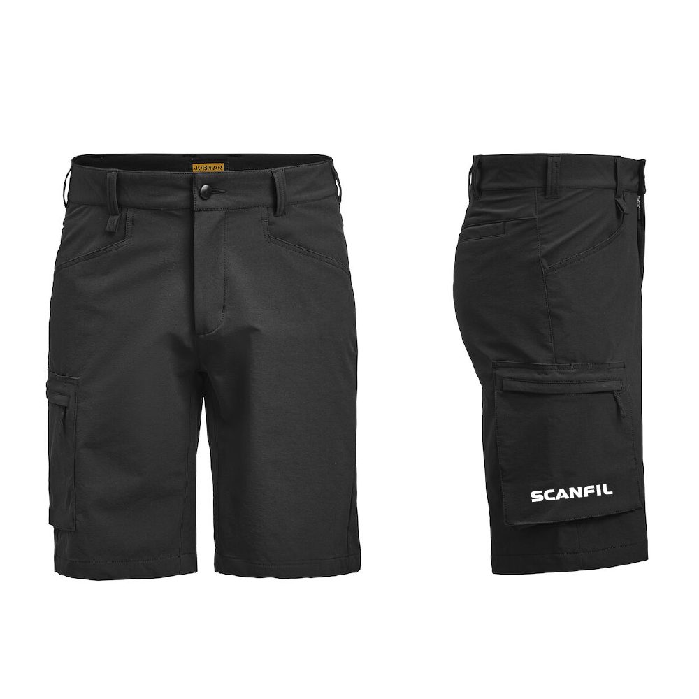 Serviceshorts, dam i 4-vägs stretch i polyamid/elastan kvalitet. Baserad på Service byxa stretch, dam 2319. Rymliga framfickor. Stolpfickor bak. Blixtlåsförsedd benficka med extra fack inuti för mobilen. Plats för pennor i denna ficka.